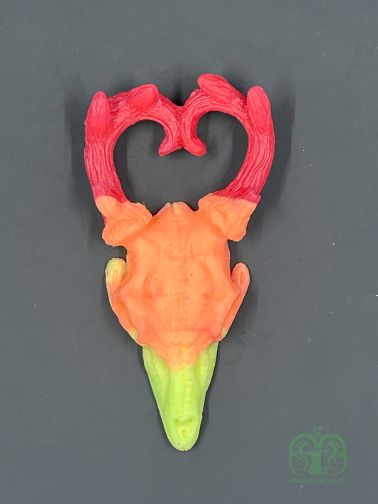 Flop- UV Neon Sunset Deer Deer Skull Squishy- Red, Orange & Yellow